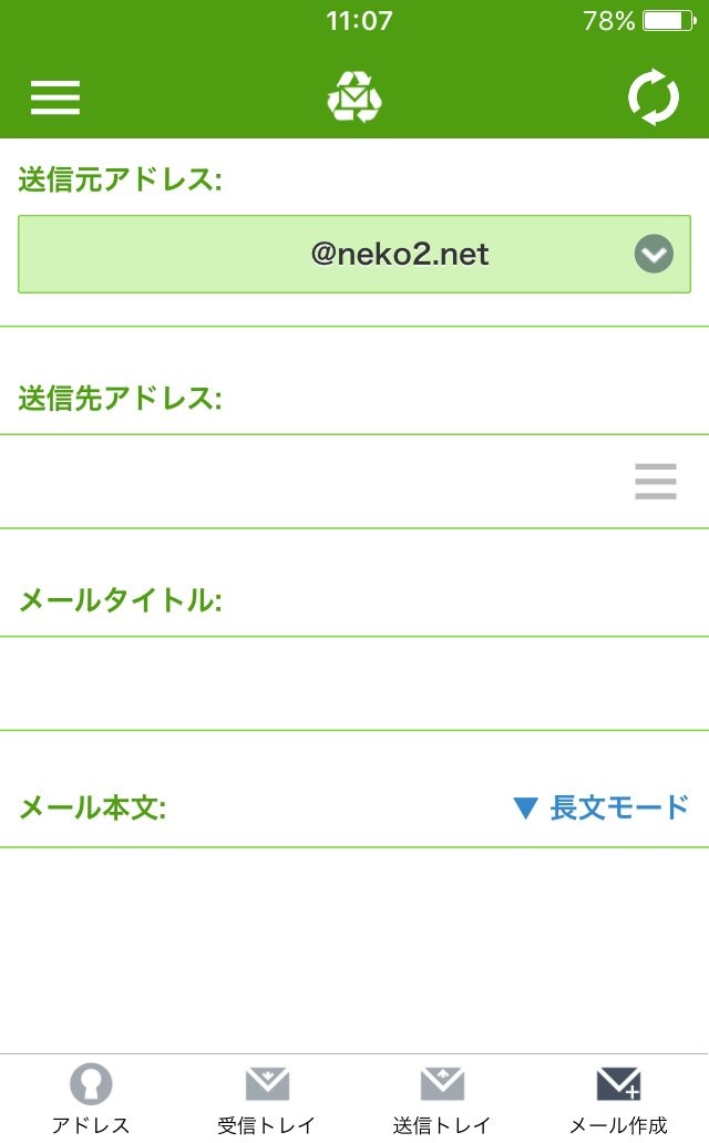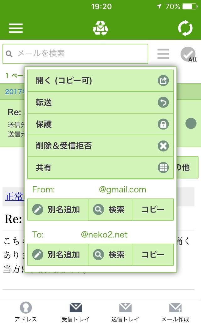2.他のメーラーを使用して、IMAP、POP3、SMTP接続は出来ません。アプリ自体にメーラー内臓です。