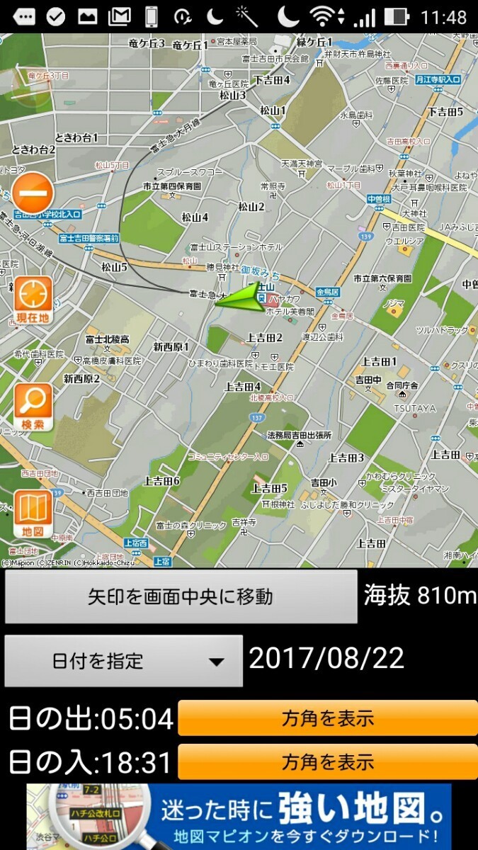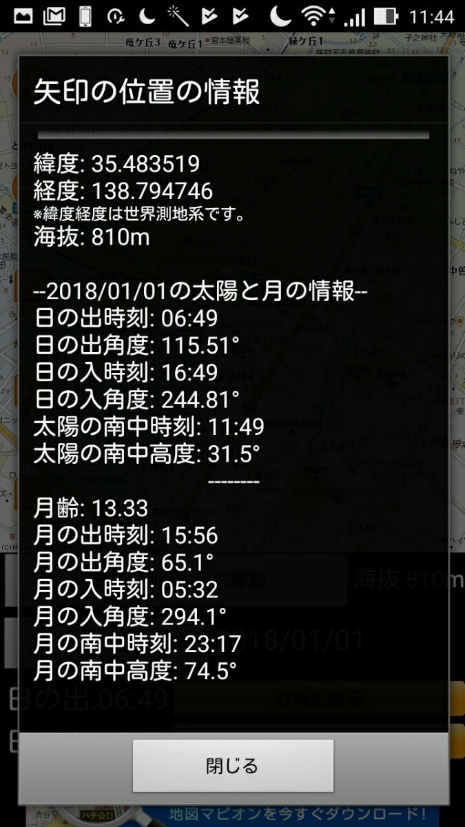- 「日の出日の入マピオン」の地図上で確認できる?