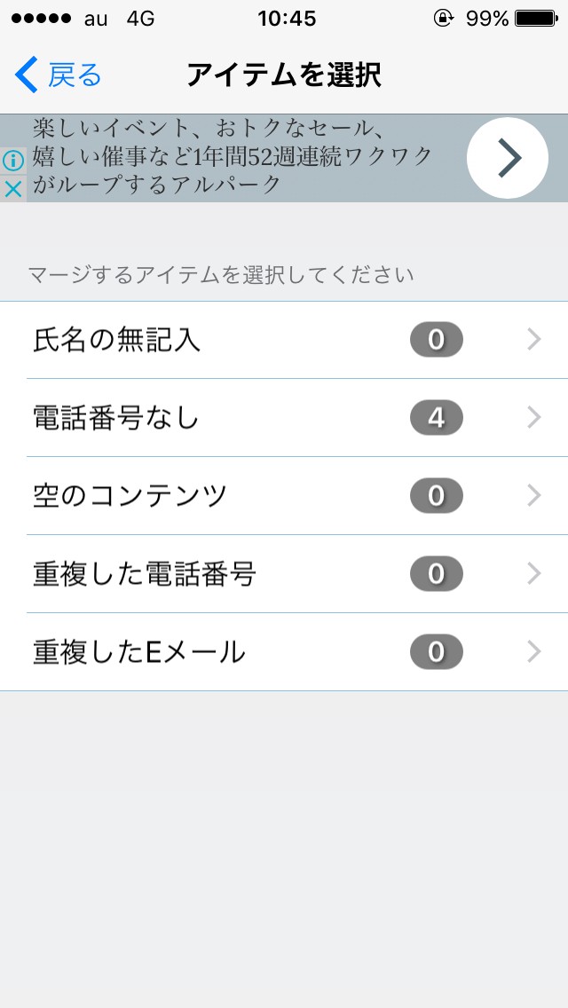 名前やアドレス、電話番号から重複した連絡先を自動で検出してくれます。