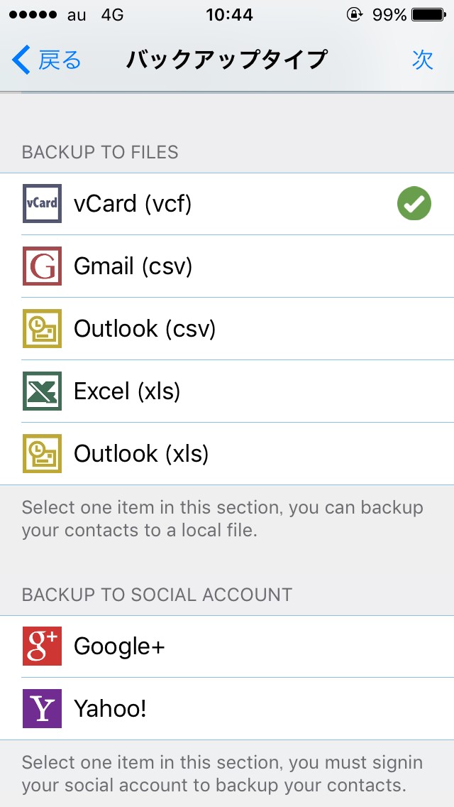 ・コンタクトのバックアップ