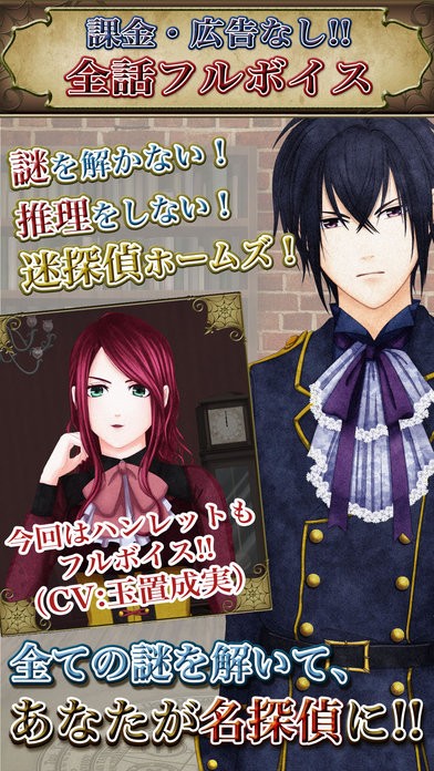 「脱出『ヴァンパイアホームズ~ハンレット忘却曲線~』」に登場するキャラクターを簡単にご紹介させていただきます。「ヴァンパイアホームズ」の主人公はホームズ、キャラクターボイスを担当しているのは瀬名快伸さんです。ホームズはロンドンで探偵をしていますが、推理をしないという変わった青年です。ヒロインはハンレット、キャラクターボイスは玉置成実さんです。ハンレットも探偵ですが、行方不明になった父を探すためにホームズを頼ります。