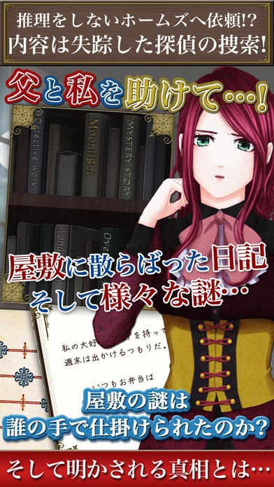 「脱出『ヴァンパイアホームズ~ハンレット忘却曲線~』」は、脱出推理ゲーム「Vampire HOLMES(ヴァンパイア ホームズ)」シリーズの第7弾となっております。デベロッパはCUCURI、カテゴリはゲーム。リリースされたのは2015年5月30日、サイズは68.6MB。販売元はCUCURI Co.,Ltd.です。また、以下の理由で年齢制限指定12+となっております。まれに軽度なバイオレンス、まれに軽度なアニメまたはファンタジーバイオレンス、まれに過激な言葉遣いまたは下品なユーモア、まれに軽度なホラーまたは恐怖に関するテーマが含まれますので、そういった要素が苦手だという方はお気をつけください。iOS5.1.1以降に互換性があり、iPhone、iPad、iPod touchに対応しています。