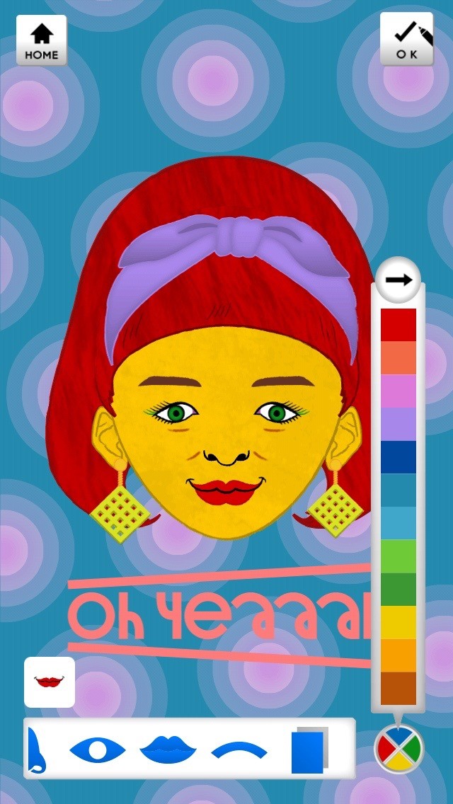 似顔絵を作るのは簡単で、顔が各パーツごとに分かれているので、選択して位置を変えるだけです!できた似顔絵はカメラロールにもアプリ内のギャラリーにも保存されます。
