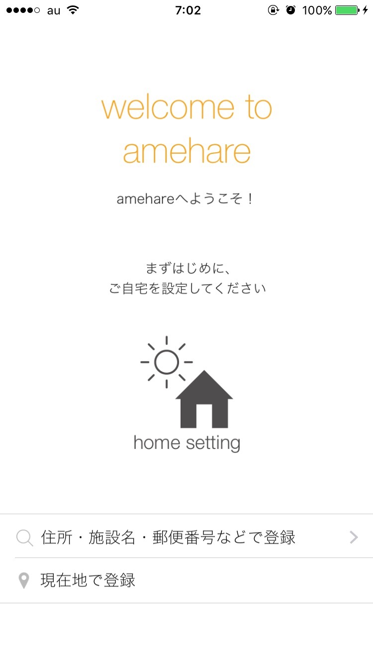 アプリを開いてみると、自宅を設定する画面が出てきます。住所や郵便番号、または現在地の位置情報から設定しましょう。