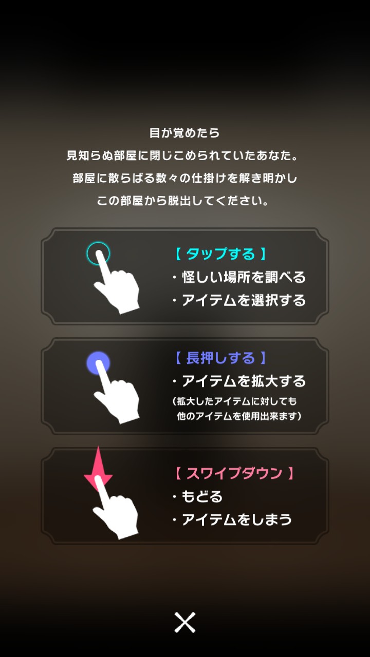 「脱出ゲーム CUBIC ROOM-小さな画廊からの脱出-」は、部屋やアイテムや仕掛けのグラフィックが実写さながらであるところが特徴的です。一つ一つのグラフィックが丁寧に作り込まれているため、臨場感のある謎解きを楽しむことができます。また、ジェスチャーの使い分けによってストレスのない操作を行うことができます。小さな画廊が舞台となっているため手がかりは少なめですが、アイテムや仕掛けをじっと見つめ続けていたら何かに気付くかもしれません。とにかく部屋の中を観察して違和感を察知することが謎を解くコツとなっております。どうしてもわからなければヒントを見て先に進めますので、そこまで気負うことなく謎を解くことができます。