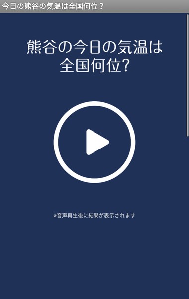 興味津々で再生ボタンを押してみると、「今日の熊谷市の気温はーー!!」という可愛らしい女性のアニメ声と共にドラムロールが流れ、