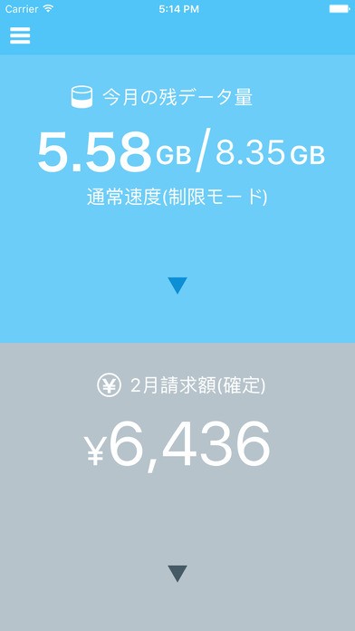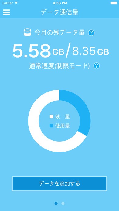 - データ量がグラフ付きで表示、残量と使用量が見やすい
