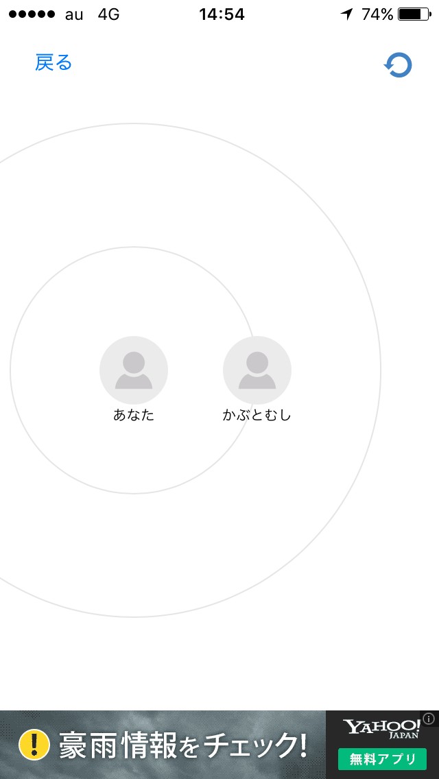 画面中央の「あなた」の周り20メートル以内に「NEAR NEAR ニアニアで近くのみんなとメッセンジャー」を起動中の人がいる場合は、周りに名前が表示されますよ。