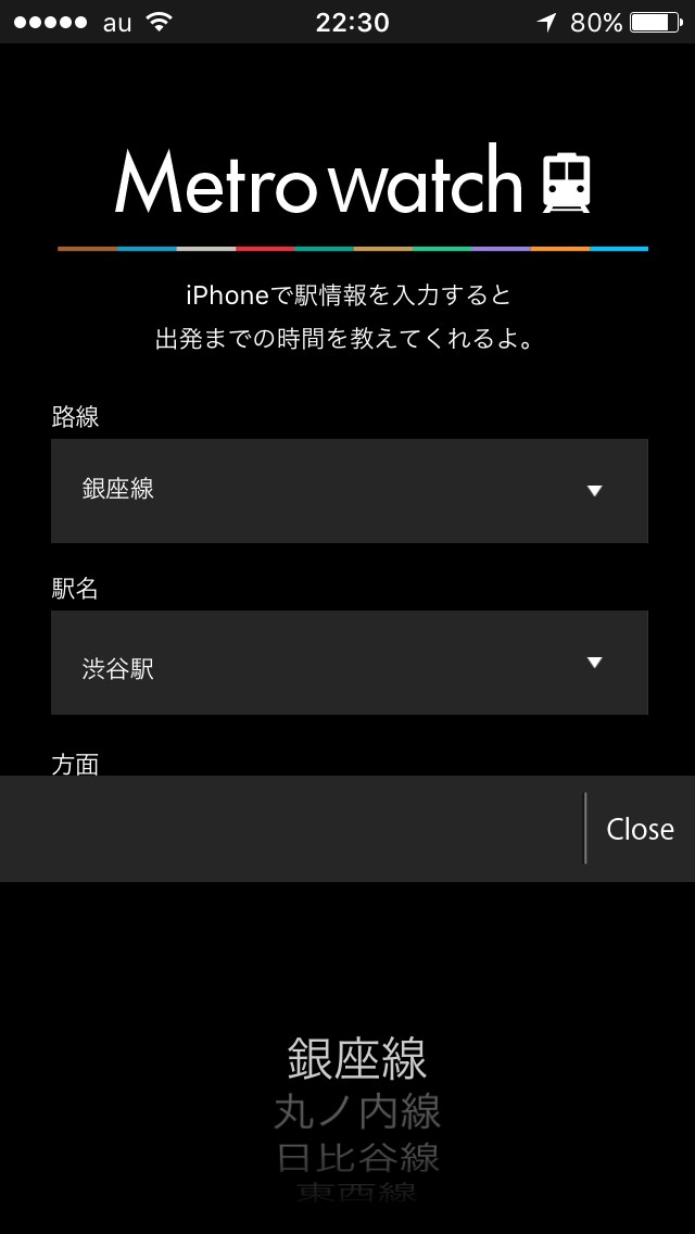 という点です。「MetroWatch」を使うと、東京の地下鉄の路線、駅名、方向を設定するだけで、3本分の出発までの時間をチェックできますよ。
