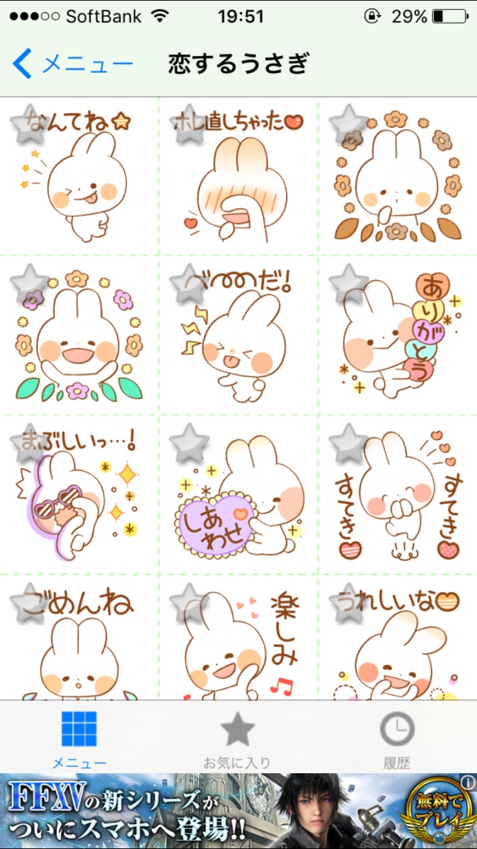 以上の人です。女友達にウケ狙いで「大阪のおばちゃん」スタンプがおすすめです。彼氏に素直な気持ちをなかなか言えない恥ずかしがり屋さんには「恋するうさぎ」スタンプで愛のメッセージを伝えるのも良いかもしれませんね!