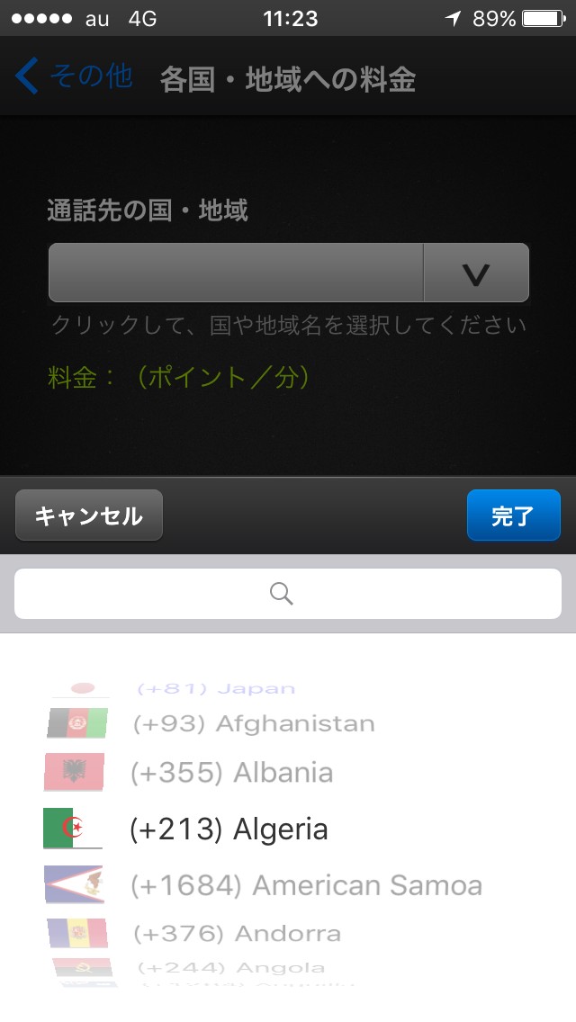 画面下部の「その他」をタップし、「各国・地域への料金」を選択して確認してみましょう。