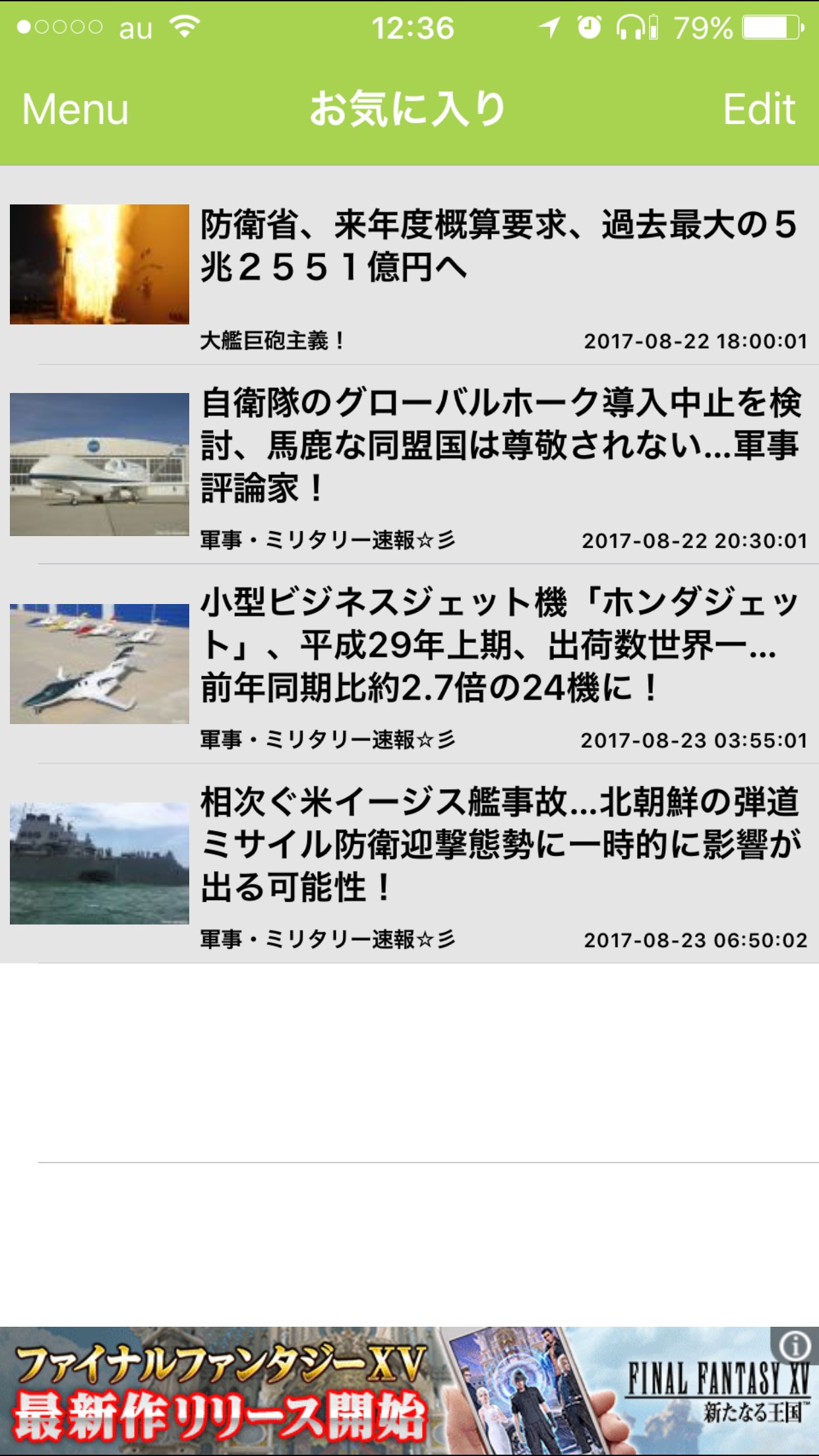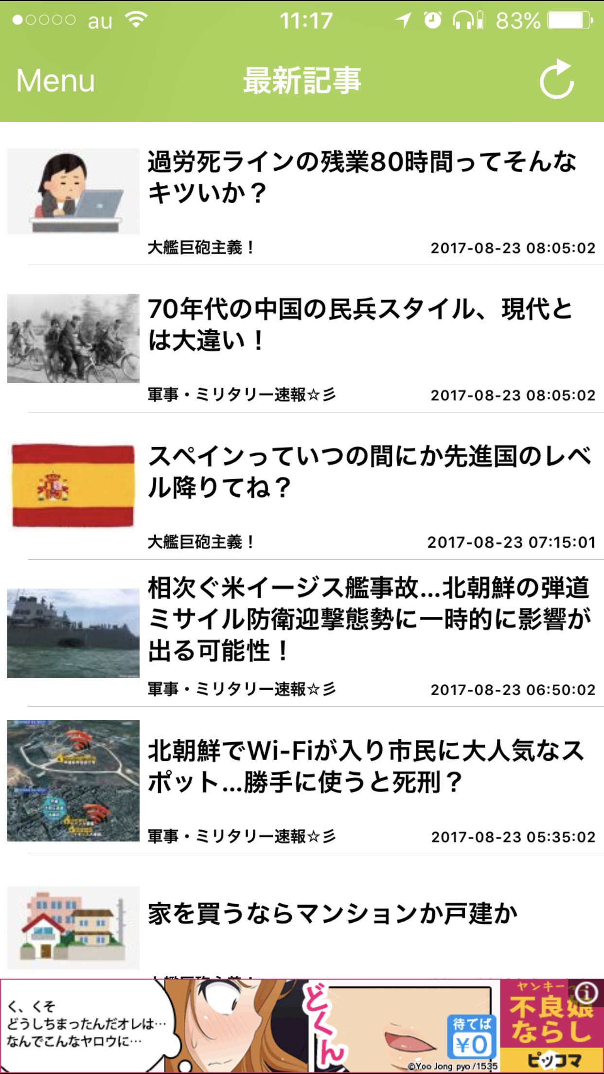 このアプリはミリタリー関連のまとめブログの記事をまとめて読むことができます。