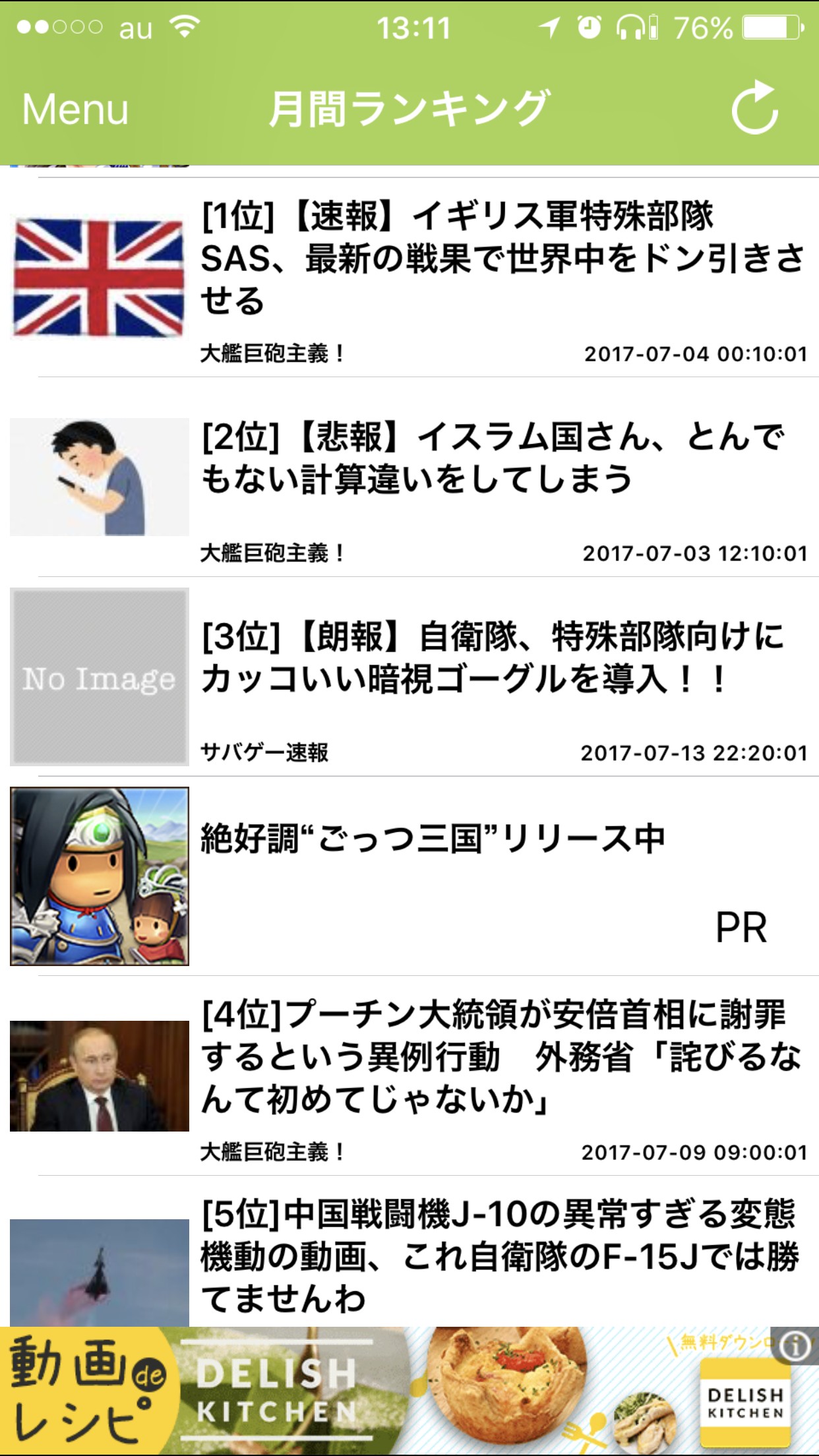 アプリで閲覧できる記事は、ミリタリー関連のまとめブログを