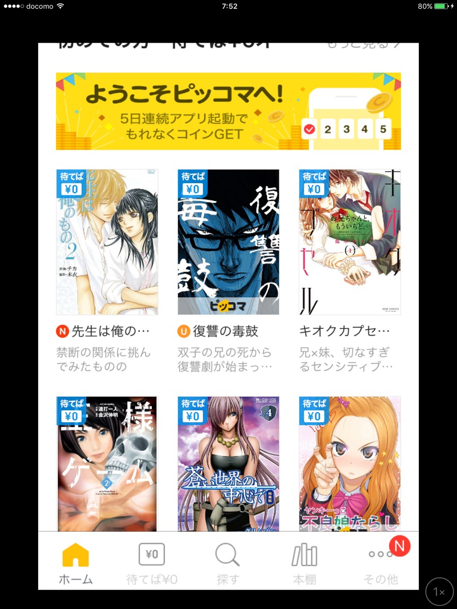 人気マンガでも1日待つことで無料で読むことが出来るアプリ