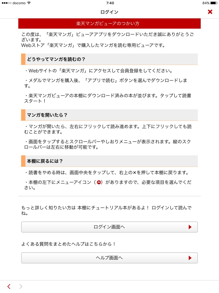楽天マンガで購入したものを管理することが出来るアプリ