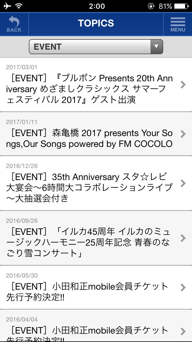 - 「小田和正 mobile」には公式ウェブサイトの紹介やカレンダーアプリとの連動も