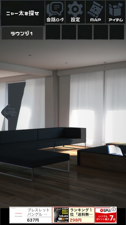 「脱出アドベンチャーシリーズ」の遊び方は普通の脱出ゲームと何ら変わりはありません。怪しいと思うところは画面をタップし、何か回収できるアイテムを探してみましょう。このアプリでは矢印をタップして視界を変えたり、画面上部にあるmapをタップすると、移動できるエリアの地図を見ることができます。視界を変えるだけでなく、事務所内の部屋を行き来することで謎解きを進めていきます。拾ったアイテムは画面上部に表示され、アイテムは最大5つ所持することができます。この5つのアイテムを探してステージをクリアしましょう。調べる部屋が普通の脱出ゲームと比べると多いので、謎解きのやりがいのあるゲームですよ。