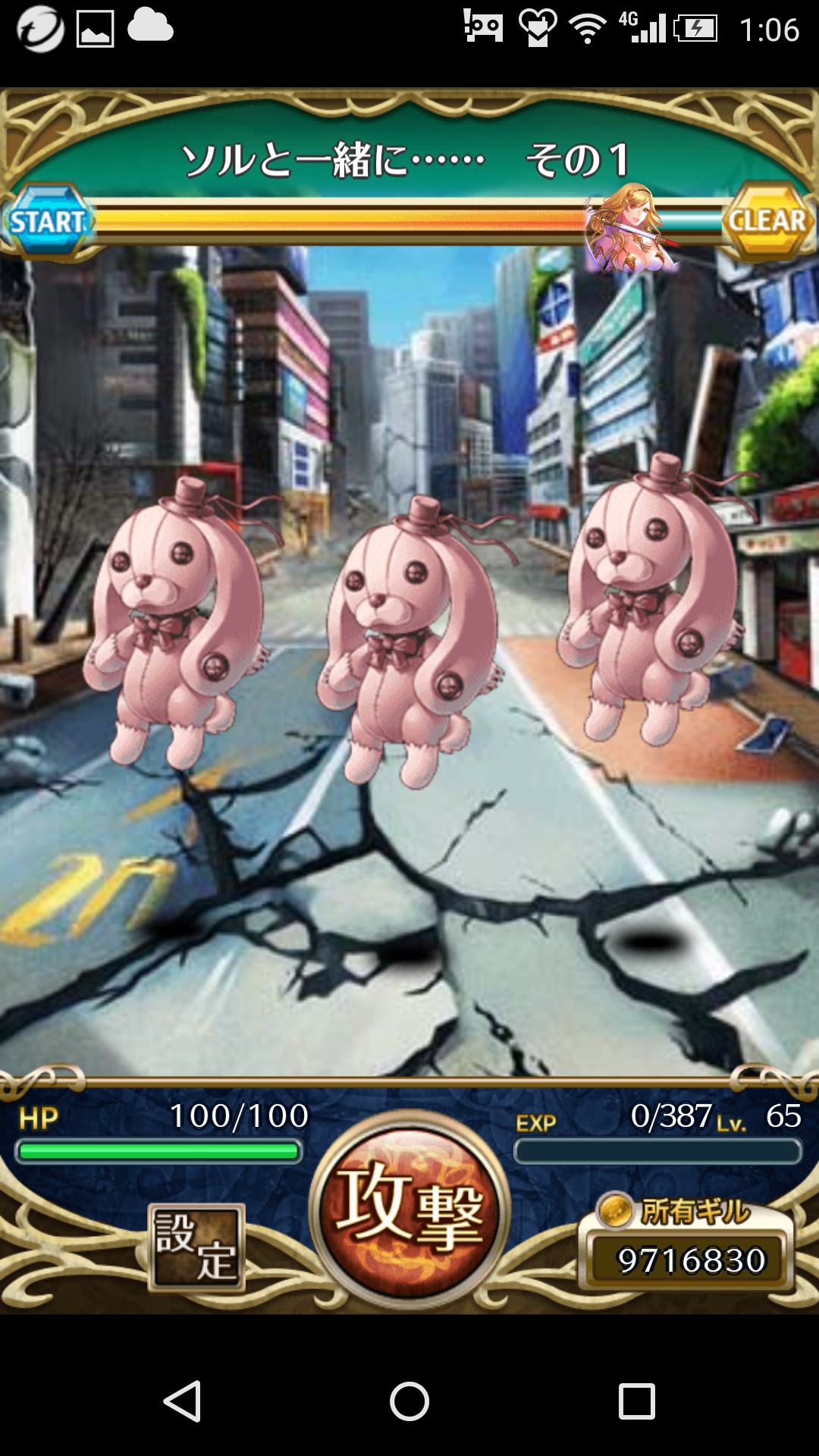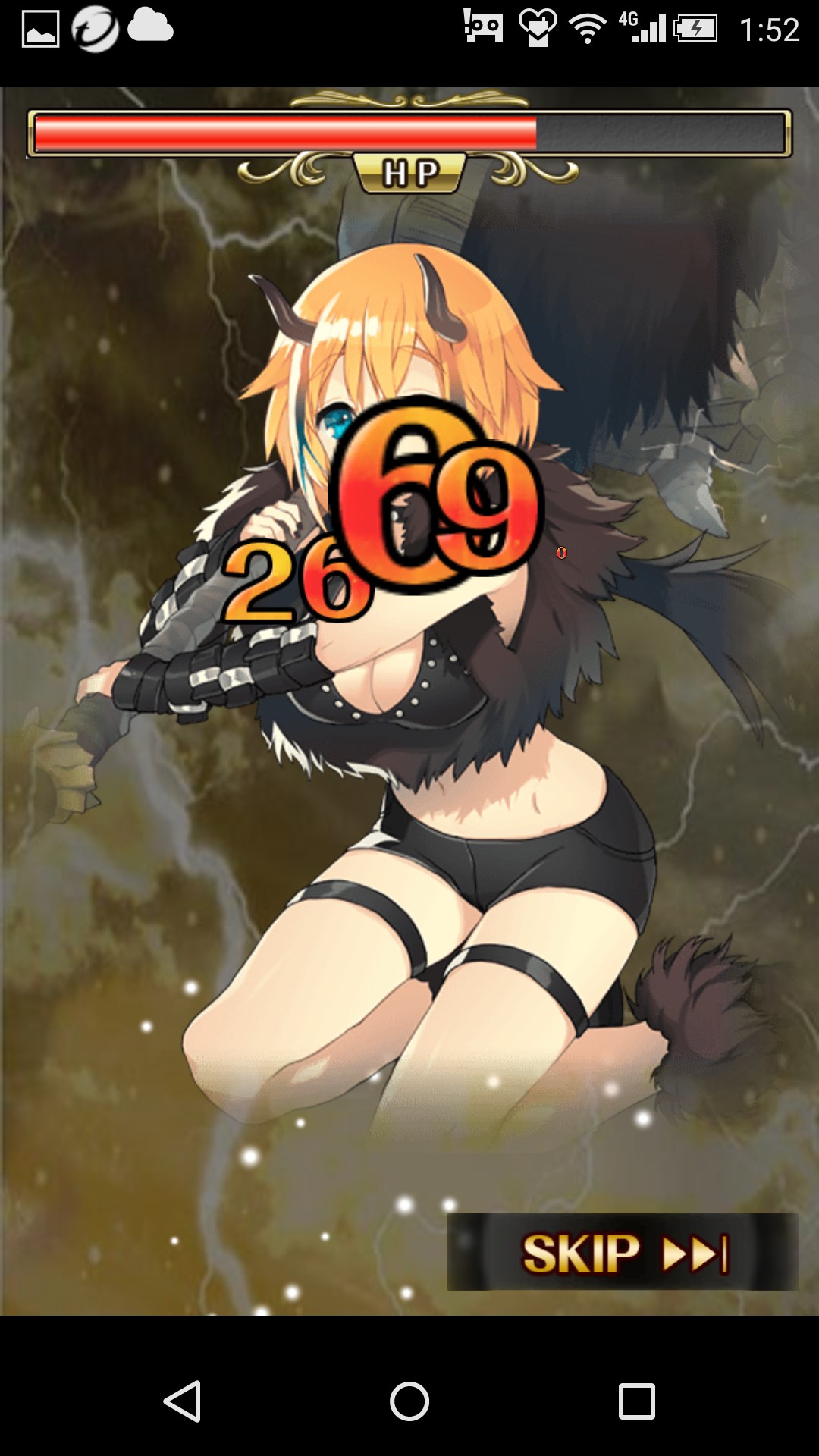 使い魔の力は弱く一発で倒せてしまいます。攻撃のボタンをタップするとHPを消費して使い魔を倒し、達成度が高まっていく仕組みです。達成度は画面上のゲージで表示され、