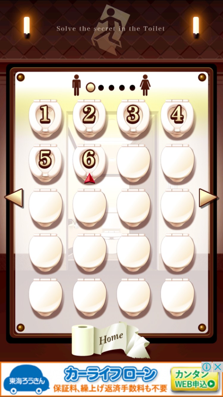 謎解きは、隅々まで見ましょう。謎解きは、トイレ部屋、その隣の部屋が舞台になっています。しかし、どこを探しても何もない、なんていう時には、ステージの外を見てみるのもいいかもしれませんよ。このゲームは、いろんな所に謎解きの鍵が散りばめられています。