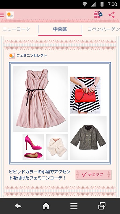・天気、気温、湿度、風速などから毎日コーデが変わる