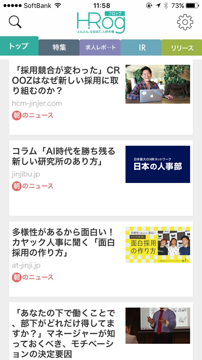 今回は人材業界に詳しいニュースアプリ「HRog(フロッグ) 〜HRに特化したデータベース&ニュースメディア〜」を紹介します。HRとはHumanResouceの略、つまり人材の意味で、この「HRog」は人材の「HR」と記録の「Log」を掛け合わせた造語です。