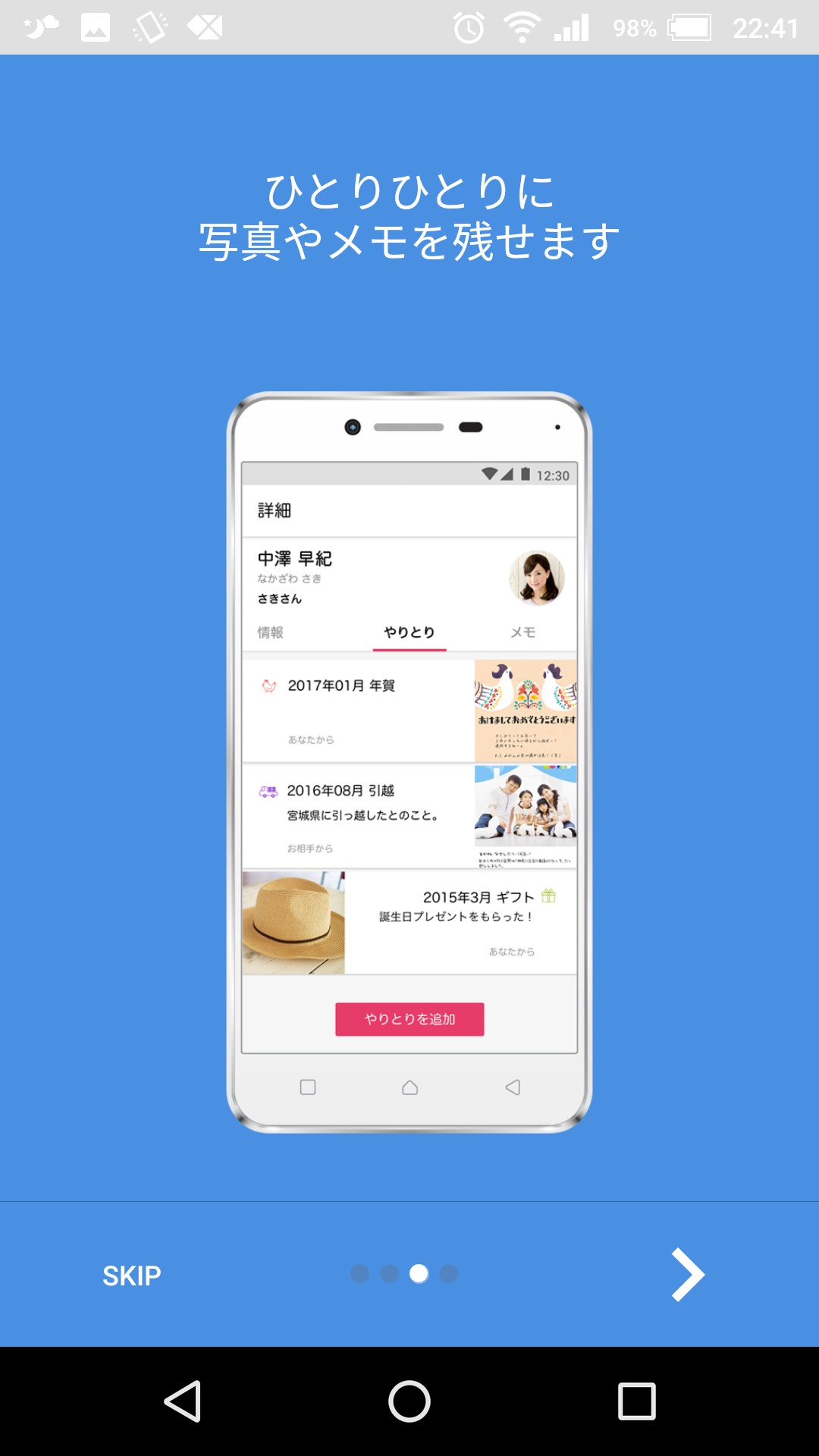 親戚づきあいの多い方や仕事上でのつきあいの多い方には、便利なアプリではないでしょうか。