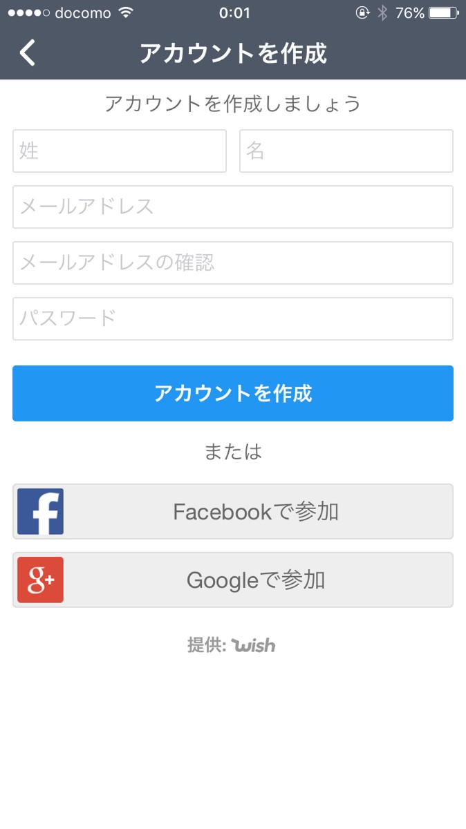 アプリを起動すると、まずはアカウントを作成する画面が表示されます。
