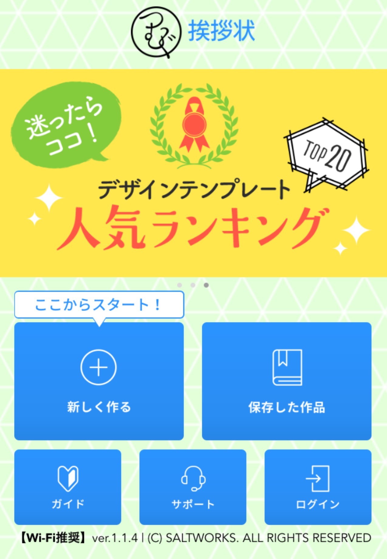 保存作品はスタート画面「保存した作品」から確認できます。