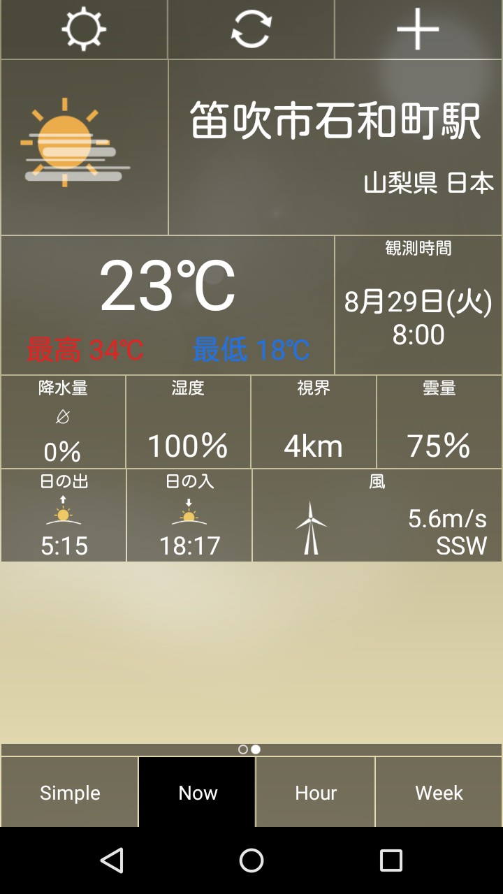 ・湿度や現在の気温、その他、日の出時刻、日没時刻なども分かります!