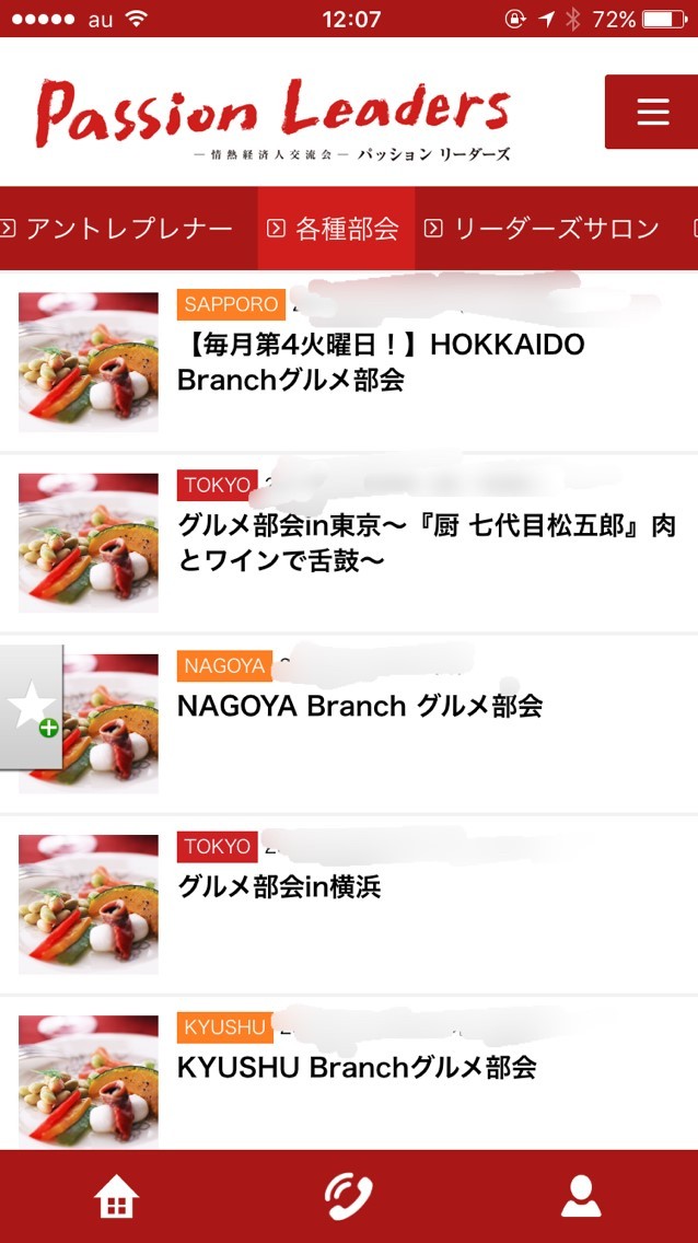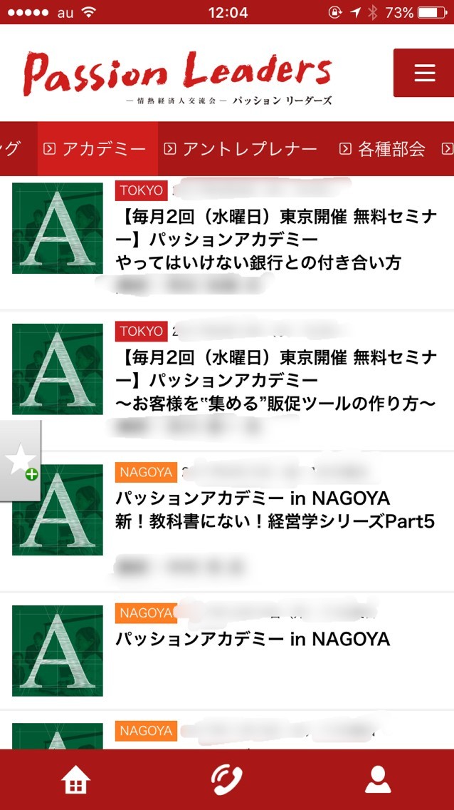 「パッションリーダーズ公式アプリ」を使って各種セミナーや部会のイベント情報を調べてみました。