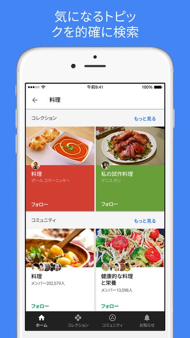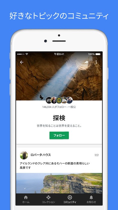 「Google+ - 興味、コミュニティ、発見」は facebookや twitter のように興味のある人をフォローすることができます。 google+アプリの場合、フォローし合わなくても自由に登録することができるので、たくさんの情報をあつめて管理することができます。また gmail やハングアウトなど google のサービスと連携することもできます。つまりgoogleアカウントを持っている知り合い同士でつながりを持つことができるのです。自分の興味のあるものだけではなく、まざまな物を探すことができるので、新しい趣味を見つける手助けともなります。少しでも気になる人がいたらとりあえず登録しておくことで、その内容について自然に情報を手に入れることもできます。登録機能をうまく使って興味のあるコンテンツを集めてみましょう。