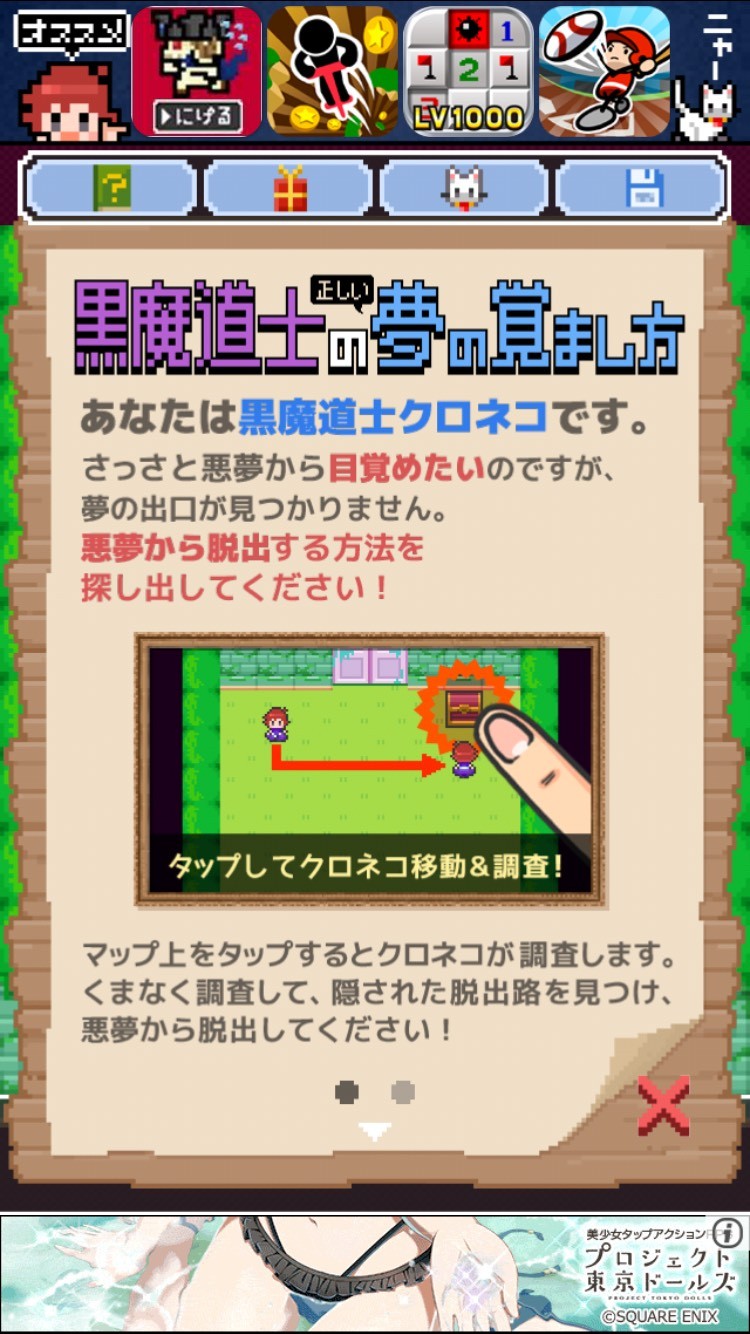 このゲームの世界は、悪夢から目覚めたい、脱出したいと思う黒魔導士クロネコが探検するというものです。