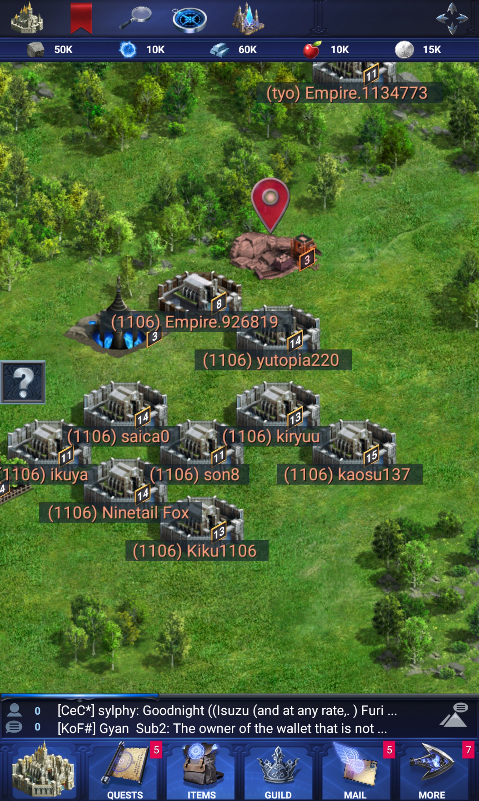 戦争ではフィールドに点在する他のプレイヤーの王国に攻め込む事ができます。各国の戦闘力や発展具合などを確認し精鋭を率いて攻め込みましょう!