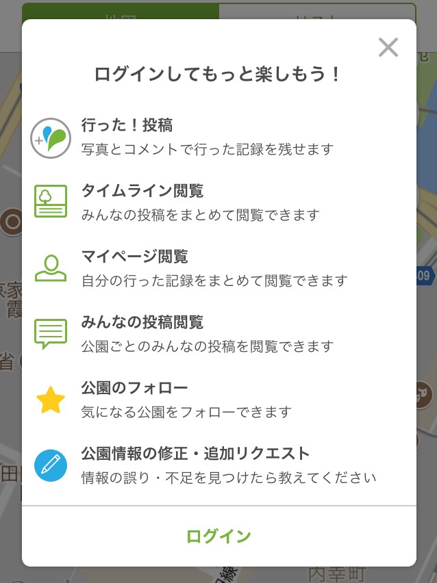 自分が行った場所の公園を写真やコメントと一緒に記録することもできますので、アプリ利用時には会員登録でより充実した機能を使用されることをおすすめします。