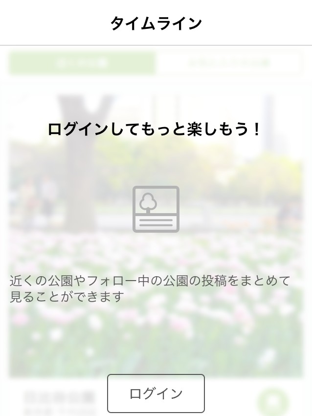 タイムラインでは、近くの公園やフォロー中の公園の投稿をまとめて見ることができる便利な機能です。