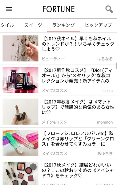 - 「 ふぉーちゅん -コスメ・ファッションなどトレンド情報をお届け」はコラボ企画や取材記事が豊富
