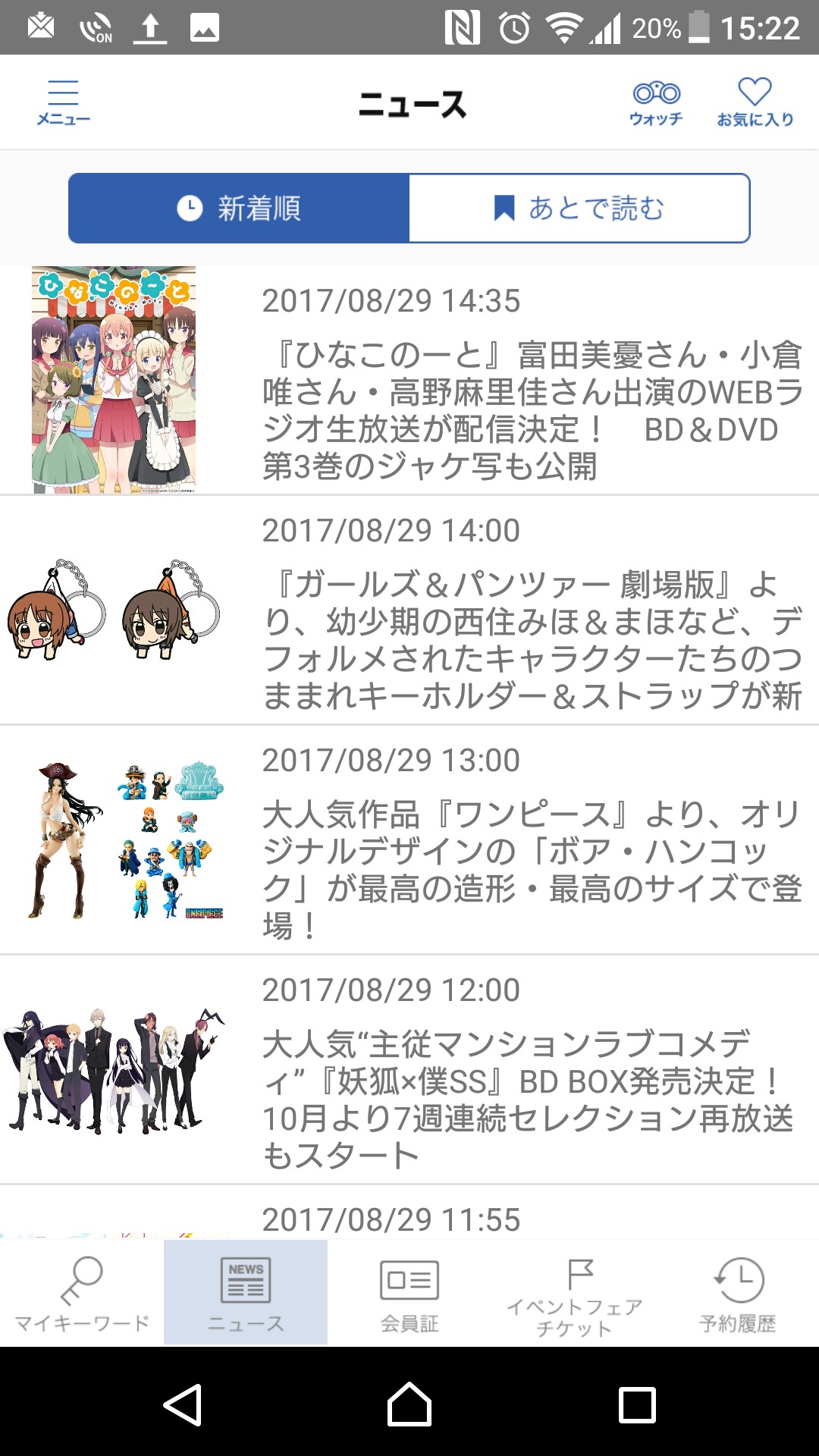 アニメなどの関連グッズやDVDの発売や予約開始などの新着情報を閲覧することができます。