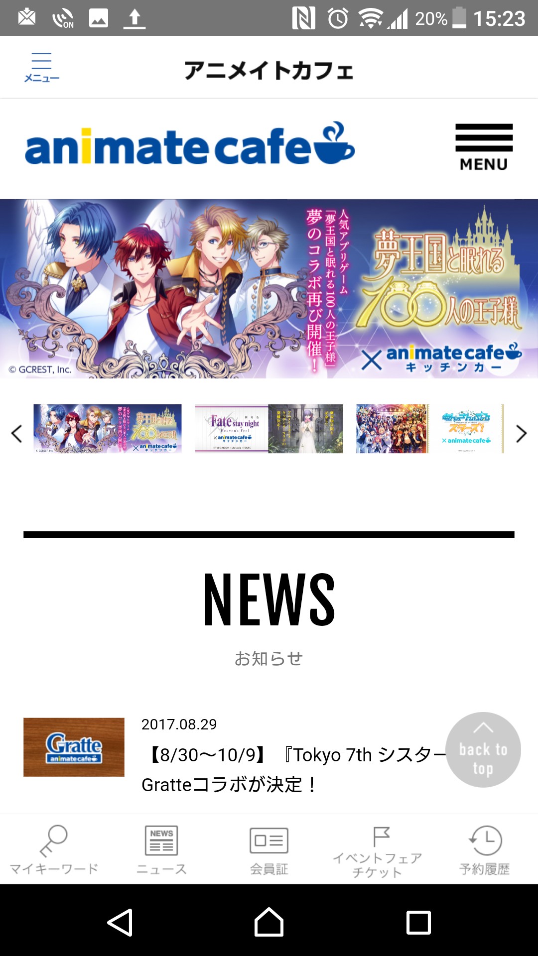 アニメイトによる、さまざまなアニメやゲームなどの作品とのコラボレーションが楽しめる、「アニメイトカフェ」の来店予約もここから可能。アニメイトカフェでコラボ中、もしくはコラボ予定のゲームなどに関するニュースや、店舗で配布されるオリジナルグッズの情報もまとめて見ることができるので、要チェック。人気のコラボは予約があっという間に埋まってしまいますので注意が必要です。そんなことにならないよう、事前に空席情報を調べることができますので、来店を考えている方はなるべく早くに状況をチェックして、予約を済ませておきましょう。