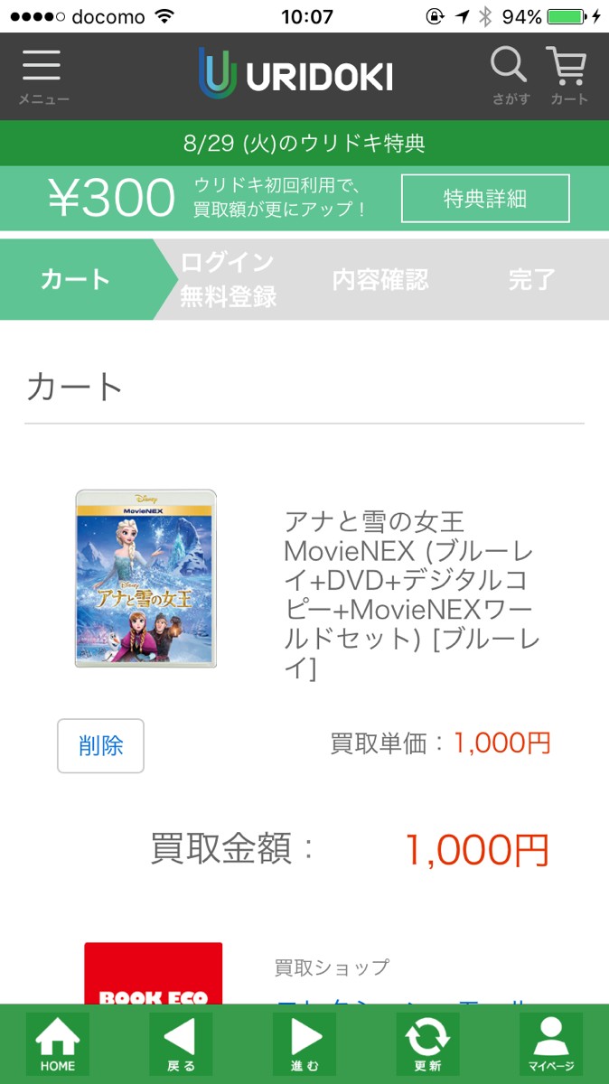 買い取ってもらいたいお店を選んだら「買取カートへ入れる」ボタンをタップします。その後、無料の会員登録をしてください。登録が完了したら内容を確認して買取登録が完了します。