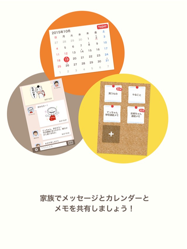 アプリには、家族同士でメッセージを送り合えることに加えて、カレンダーやメモの共有を行うこともできるんです。
