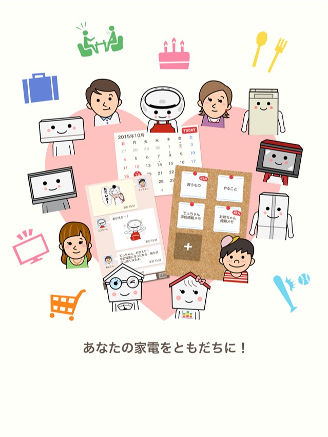 対応家電を登録すると、登録した家電をモチーフにした可愛いキャラクターを通して登録家電とのコミュニケーションを図ることができます。