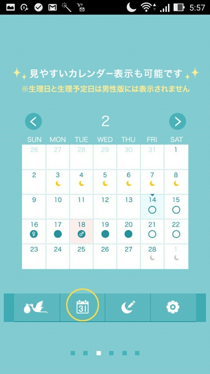 「コウノトリ:カップルで共有できる『妊娠・妊活サポート』アプリ」は、赤ちゃんを授かりたい人のために妊活を全力でサポートするアプリです。毎日の基礎体温や体調、生理日を登録することで、オギノ式排卵日計算によって算出した妊娠しやすい日を特定してくれますよ。妊娠の可能性が高い日には通知が入るので、パートナーにも分かりやすいです。「排卵日だけど、なかなか言い出せない」や「排卵日で妊娠の可能性がある日なのにパートナーが早く帰ってきてくれない」という妊活特有のもどかしさも、「コウノトリ:カップルで共有できる『妊娠・妊活サポート』アプリ」が解決してくれますよ。生理日や妊娠しやすい日、とても妊娠しやすい日、女の子が生まれやすい日などをカレンダーで確認することも可能です。夫婦で共有して、妊活のストレスフリーを目指しましょう。