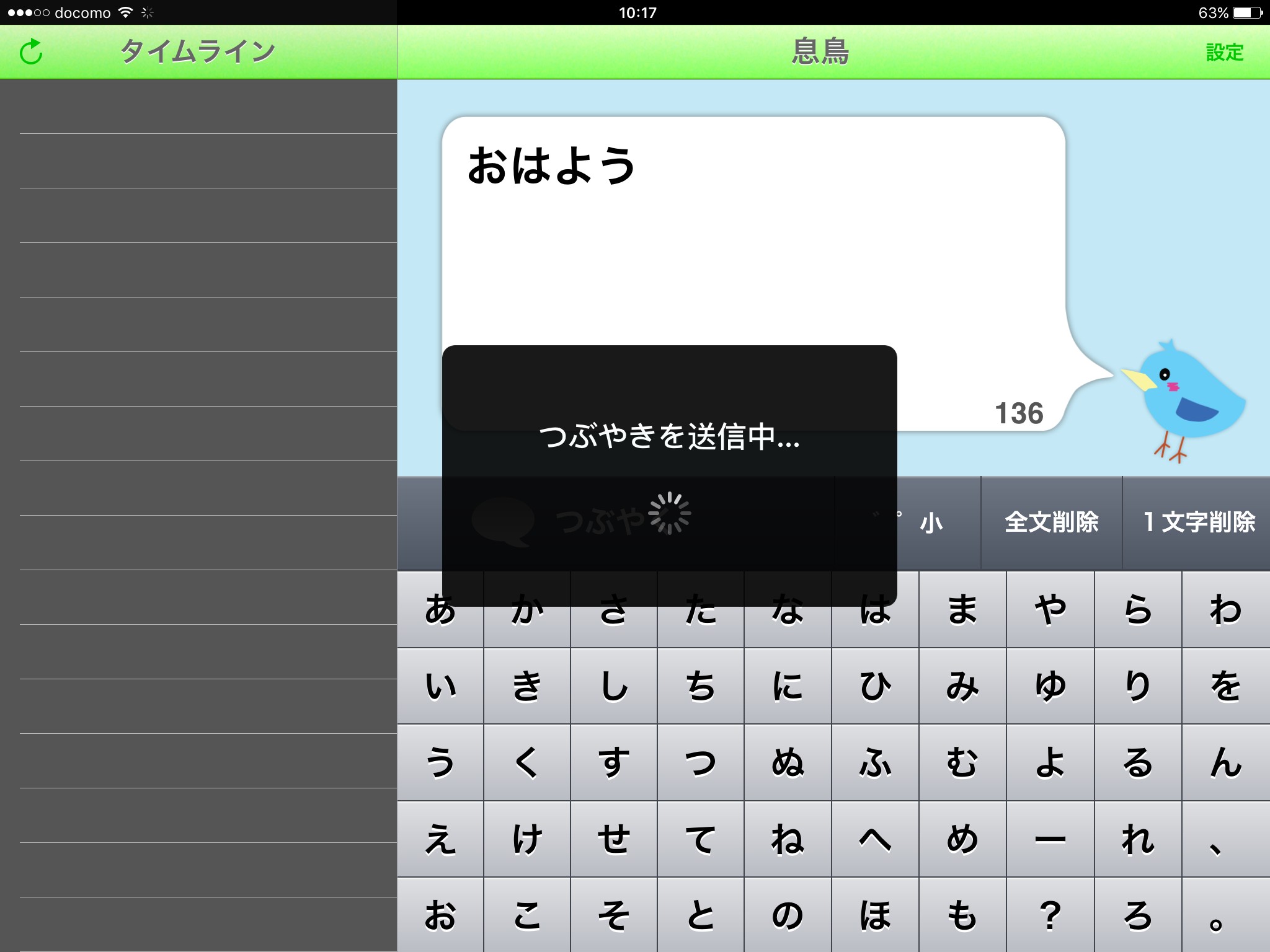 息を吹きかけることで文字入力を可能にした「息鳥」は、指や手の動きが難しい方向けのTwitterクライアントです。基本以外の操作機能を省いてシンプルに設計されています。テンキーをなくした見やすい文字配列ですので、手入力初心者の方も使い易いでしょう。iPadにマイクを装着することで息を吹きかけるだけでつぶやきの投稿が可能です。「おはよう」と入力したい時は、まず「お」がある列の色が変わるタイミングで息を吹きかければ入力されます。