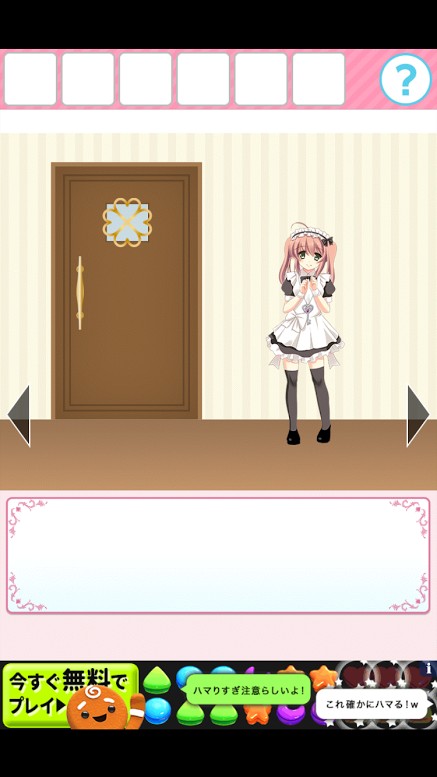 まず基本操作ですが、操作方法は怪しいと思うところをタップして調べるだけなので誰でも簡単にプレイすることができます。画面を見てみると、左右に矢印があります。画面の視界を変えたい時には向きたい方角の矢印をタップしましょう。アイテムは最大6つ所持することができます。拾ったアイテムは画面上部に表示されます。アイテムを使いたい時にはアイテムをタップし、対象物をタップすることで使えます。部屋にあるアイテムの数も少ないので、簡単にアイテムを探し出すことができそうですよ。部屋には5人のメイドもいるのでどの子が良いか選んでおきましょう。