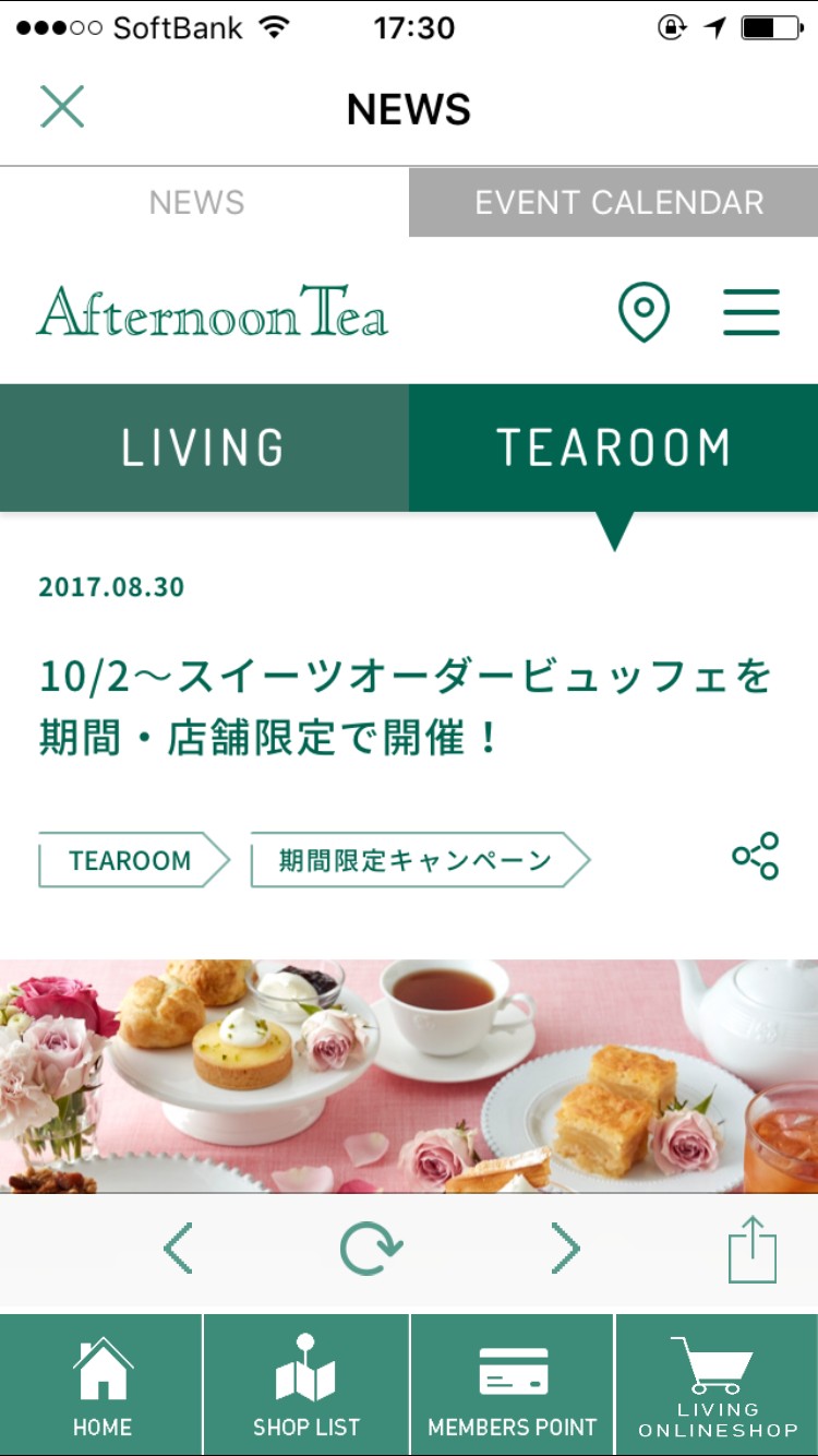 季節によって商品が変わる「Afternoon Tea」の商品をチェックしたいけれど毎回店舗へ行く時間はないという方も、アプリで最新の情報を確認することができます。