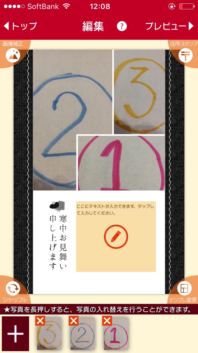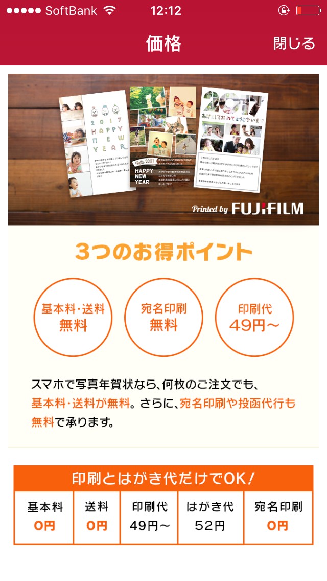 このアプリは年賀状のデザイン作成、宛名書き、印刷注文までが出来るものです。