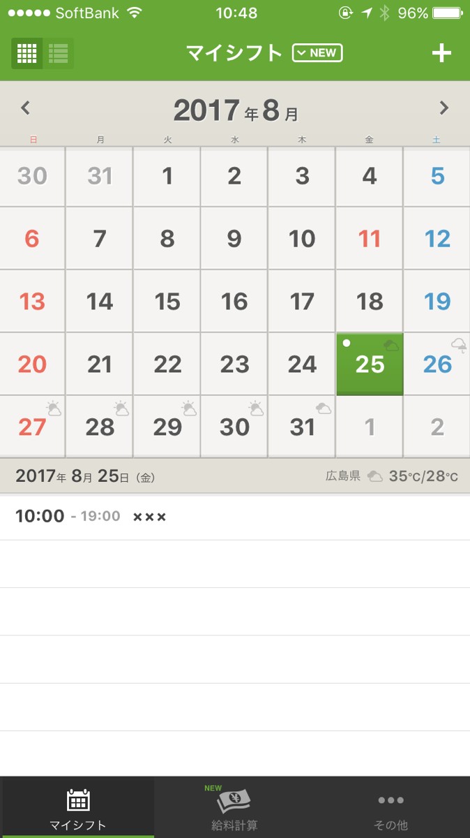 - 「シフトボード:シフト管理と給料計算が便利なバイト・アプリ」でシフトを入力してみた