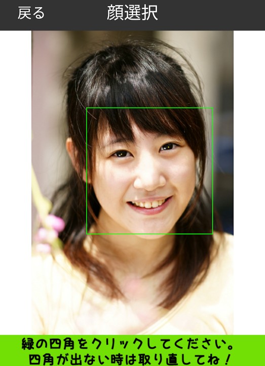 2.顔を認識できると緑色の枠が出てくるので、それをクリック