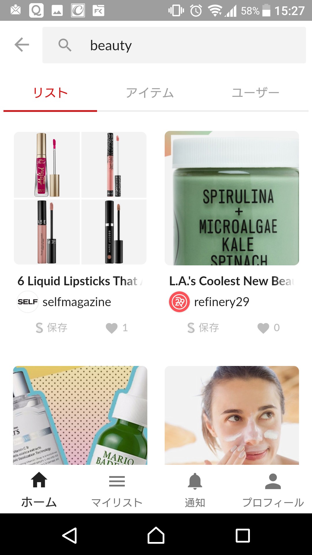 このアプリを実際に使ってみました。まずは、他のアプリと同様にお手持ちのiPhone、スマートフォンでアプリをインストールして起動しましょう。起動すると、アカウントを作成するようになっています。メールアドレス、ユーザー名、パスワードを入力したら完了です。様々ジャンルがあるなか、今回はほしいものを「beauty」にして検索してみました。スキンケア商品、口紅、メイクグッズなど多くの商品が取りそろえられていました。欲しい商品が見つかったら一旦マイリストに登録しておけばオッケーです。今すぐには買わないけど、気になるアイテムを見つけた時や、誕生日や記念日に贈るプレゼントもマイリストに保存しておけば、後で検索できるので便利ですよ。先に商品をみつけておいて、値下げ通知が来た時に購入することができるので、お得に購入することができました。
