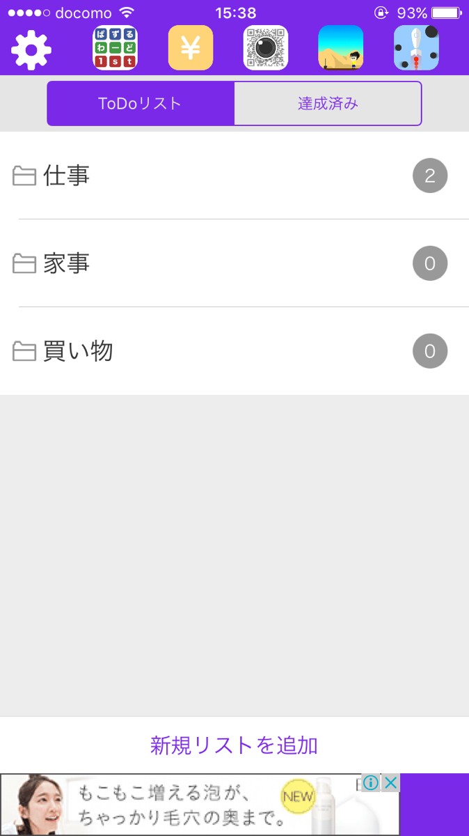 アプリ起動後、すぐにこのアプリを使用することができます。まずは、リストを登録しましょう。リストの登録は、画面下の「新規リストを追加」をタップするとリスト入力ができます。